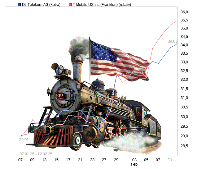 Die Aktien der Deutschen Telekom sind am Mittwoch im kräftig steigenden Dax unter Druck geraten. Eine aufgegebene Kaufempfehlung durch die britische Bank HSBC war wohl einer der Gründe, und auch der gute Lauf der Aktie. Doch das Hauptaugenmerk der Anleger galt an diesem Tag angesichts eines erwarteten riesigen Finanzpakets für Rüstung und Infrastruktur zyklischeren Werten. Die T-Aktien waren mit minus 2,7 Prozent auf 34,20 Euro der zweitgrößte unter den wenigen Verlierern im deutschen Leitindex, der zeitgleich um 3,3 Prozent anzog. Allerdings beläuft sich das Kursplus im noch jungen Jahr immer noch auf 18,5 Prozent, seit April 2024 sogar auf fast 75 Prozent. Anfang der Woche waren die Papiere dabei erstmals seit 2001 auf knapp unter 36 Euro gestiegen.
