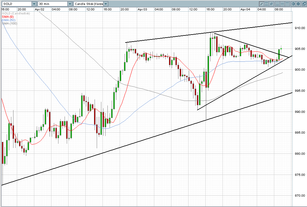 Wenn Gold jetzt wieder den Sprung über 900 USD macht, könnten die ganzen Verluste intraday wieder abgebaut werden.