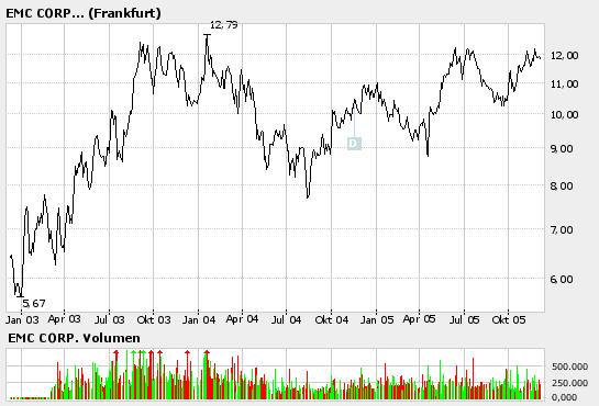 NEW YORK - Der weltweit führende Speicherhersteller EMC (NYSE: EMC, WKN: 872526) hat im zurückliegenden dritten Quartal im Speichermarkt Federn lassen müssen. Zwar sei der Markt für Hardware-Speichersysteme im dritten Quartal um 13,3 Prozent gegenüber dem Vorjahr auf 5,74 Mrd. US-Dollar gewachsen, doch schwand EMCs Marktanteil dabei auf 20,3 Prozent. Im Vorjahr konnte EMC noch einen Marktanteil von 21,3 Prozent für sich beanspruchen, so die Analysten aus dem Hause International Data Corp (IDC).
