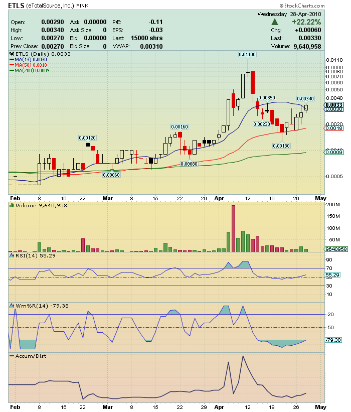 ** Will wissen, 30. April kurzen Zinsen am 15. Mai ** **http://www.otcmarkets.com/pink/quote/quote.jsp?symbol=ETLS **