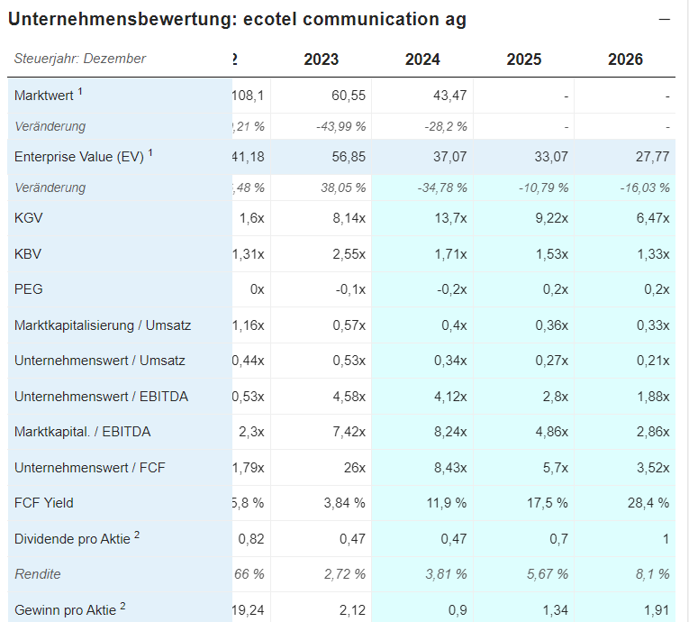 Ausblick 2023 : Überproportionales Wachstum mit neuen Produkten im cloud Bereich. 2023: 95-100 Mio Umsatz und 9-10 Mio EBITDA, ab 2025 deutlich profitabler, da einige Investionen dann wegfallen. Hier gibt es aber noch keine konkreten Zahlen. Also wird es hier vermutlich erst spannend, wenn Aussagen zur Profitabilität 2025 vom Management kommen. Würde es bei nur 10% EBITDA bleiben, würde ich Ecotel von meiner Liste streichen. Mittlerweile ist für mich die Qualität des Managements mit Abstand das wichtigste Kriterium in eine Aktie zu investieren -> track record!!