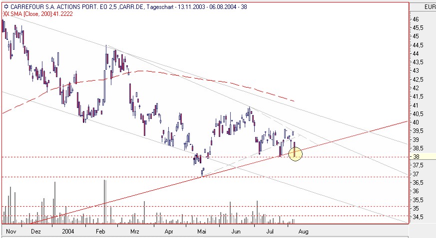 Mal schauen ob dort die 38 hält. Am 26.07. ist es nochmals gut gegangen. wenn da morgen neue Tiefs gemacht werden, kann ich mir ein einsteigen in einen Short ab so 37,80 gut vorstellen.