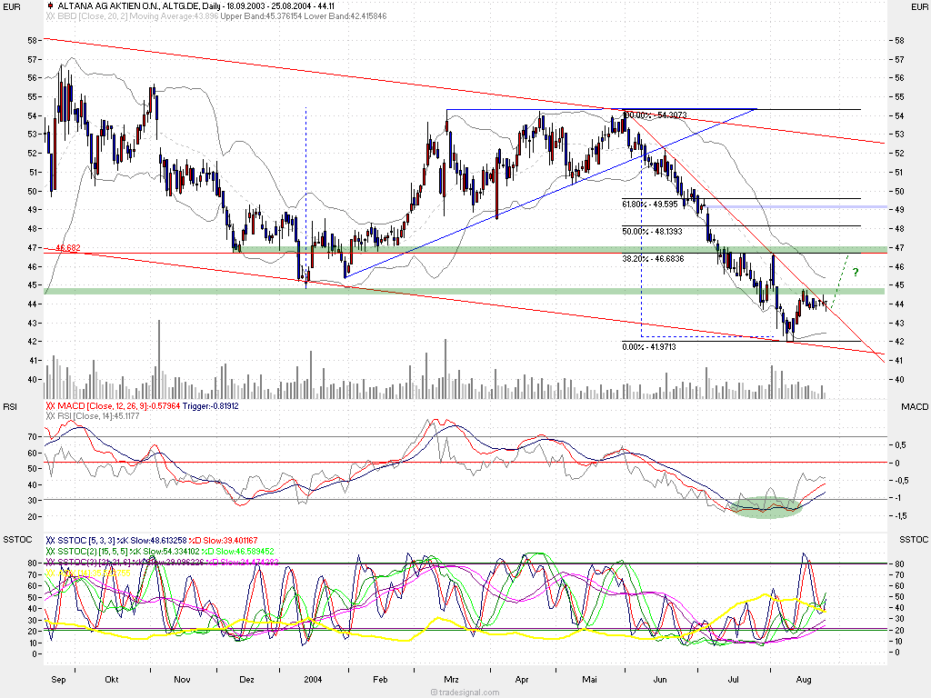 hat heute ein schönes intraday-reversal hingelegt.. closing fast auf TH..über 44. hat sich über Bollinger mitte etabliert.. ist drauf und dran den bislang so vorherrschenden downtrend zu brechen.. indikatorentechnisch sind die weichen eigentlich schon perfekt gelegt - macd, alle 3 stochs (kuz, mittel, lang)..überall kaufsignale bei fallendem adx - das ziel nach oben wäre klar definiert bei knapp 46,70. dort befindet sich ausgedehnt bis 47 ein harter horizontalresist und idealtypischerweise auch das 38er retracement des kompletten downers (54,30-42)..