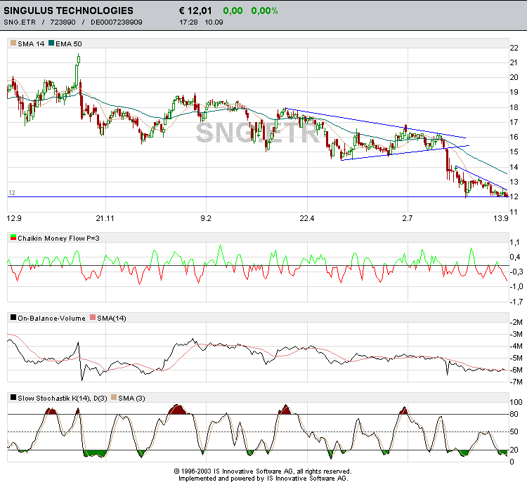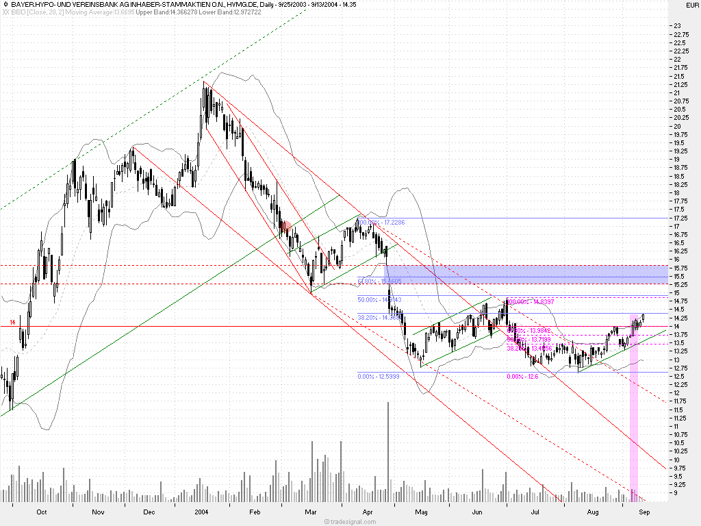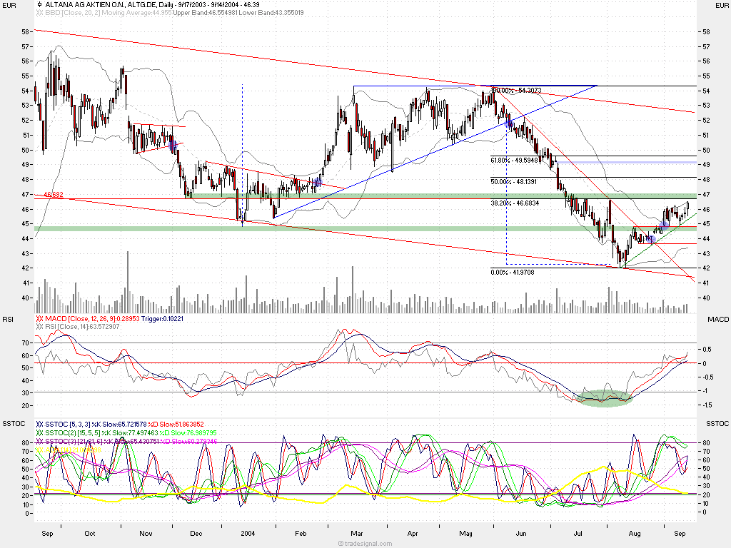 hier ist weiterhin seit meiner empfehlung vor 3 wochen long on ;) das minimalziel bleibt meinerseits bei knapp 46,70.. L&S taxt 46,51.. bis dahin wären also gerade mal 0,4%/referenz: xtr. schluss wären es 0,6% .. das o.g. grobe ziel hat sie ja aktuell bereits erreicht. der schein TB0ETQ steht bei 0,60 und ist somit bereits 58% vorn.. und das auf eine mittelfristige swingposition ;)) wenn die amis nicht mehr groß abverkaufen, gehe ich vom erreichen des ziels am morgigen tag aus..evtl wird die zielzone wie im chart sichtbar (grün) angehoben und weitet sich bis 47..das muss je nach marktlage und dynamik zeitgerecht entschieden werden. einen weiteren buytrigger wird Altana jedoch erst über 47 erfahren. die technischen umstände stehen jedenfalls gut. macd und rsi hormonieren perfekt mit dem kurschart. und die stochastics mit adx sind weiterhin positiv zu bewerten.