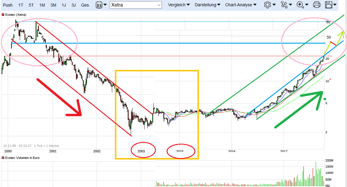 Als langfristiger Investor ein sehr beruhigendes Szenario. Das Plus reict nun an die 500% heran und somit ist ausreichen Luft nach Unten, um auch mal eine etwas schwächere Börsenphase zu überstehen. Wenn jetzt kauft und langfristig denkt, wird meiner Meinung nichts falsch machen. Sollte Evotec korrigieren und sich noch einmal verbilligen, würde selbst ich weiter aufstocken, auch wenn sich mein Durchschnitts EK dadurch herhoeht und nicht wie bei Anlegern, die jetzt kaufen, verbilligt. Ich bin und bleibe vin EVOTEC zu 100% überzeugt und bleibe langfristig investiert.