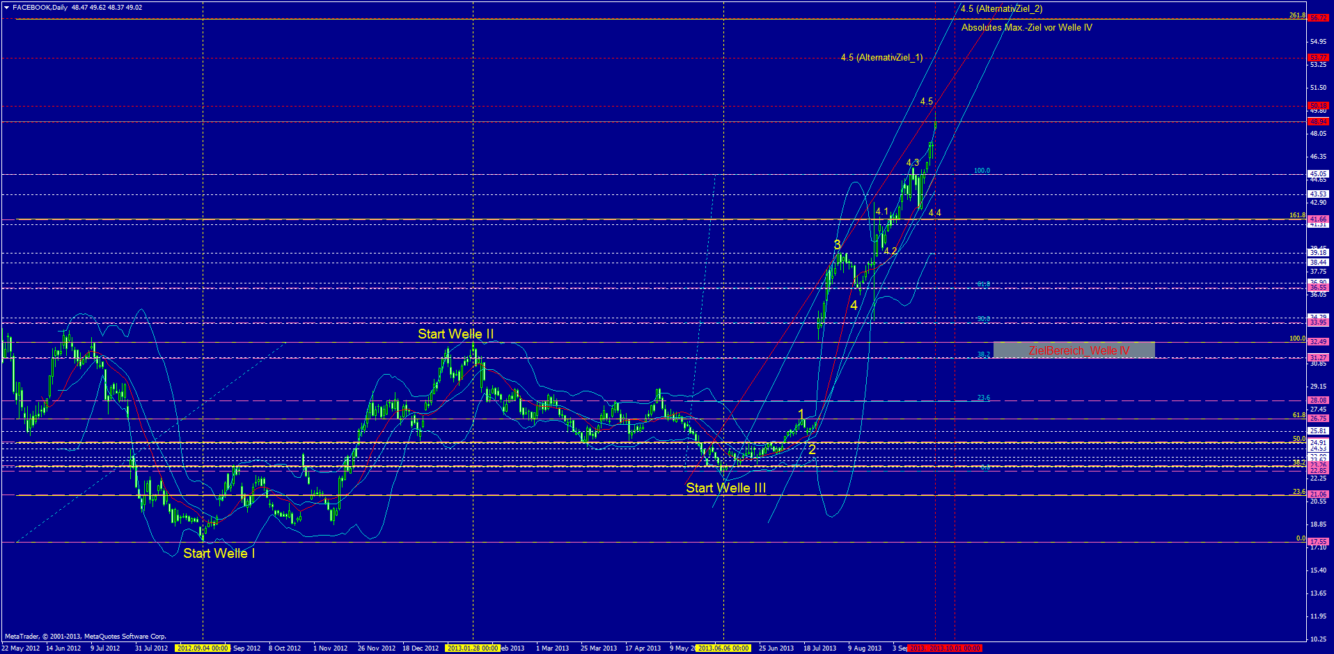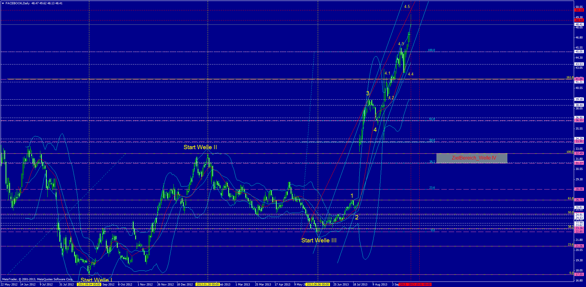 Deine Prognose,ging ja mal gut daneben, also das Spiel mit deinen Wellen funkt wohl nicht, ich glaube das wir das Gap nicht mehr schießen werden und wir auch keine Kurse unter 45-46 garnicht mehr sehen werden. Vorausgesetzt  das die Zahlen gut sind und keine Hiobsbotschaft kommt, dann werden di fb nämlich ganz neu bewertet.Dann ist das Gap auch egal .
