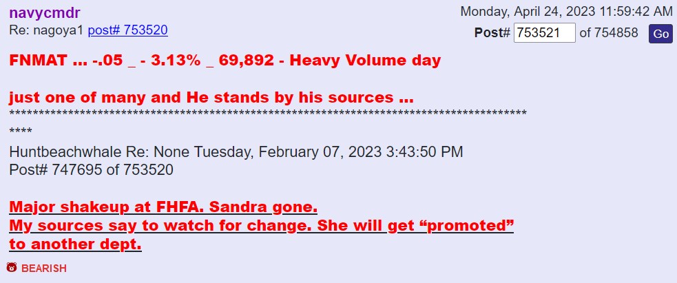 Deshalb kann ich nur lachen über die Charts von Navycommander bei iHub, die er z. B. zu FNMAS bei Tagesverlust von -4 % (mit rotem "bärisch"-Symbol) reinstellt, wenn am selben Tag z. B. FNMAT oder FMCKJ um 1 % gestiegen ist.