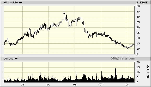... arbeitet u. a. an Kohleverflüssigung. Dies ist nur lukrativ, wenn Beihilfen vom Staat kommen - wie bei fast allen alternativen Energietechnologien (Deutschland: Biodiesel). In USA wurden die Beihilfen zusammengestrichen. Hier der aktuelle Chart von HW (seit Threaderöffnung gedrittelt, ich bin rechtzeitig ausgestiegen...)