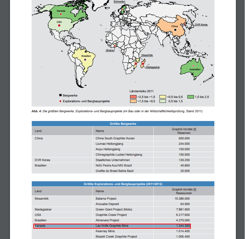 "Lac Knife in Quebec, Canada is being developed by Focus Metals Inc. (TSX.V:FMS, OTXQX:FCSMF, F:FKC), which will soon change its name to Focus Graphite Inc. It has a NI 43-101-compliant mineral-resource estimate, with 0.64 Mt of the resource at the Measured level @ 15.6 wt% CG, 4.3 Mt of the resource at the Indicated level @ 15.7% CG and 3.0 Mt at the Inferred level @ 15.6 wt% CG (each at a cut-off grade of 5.0 wt%).. http://www.resourceinvestor.com/2012/04/13/...e-projects-index?ref=hp .. Lac Knife - Development Plan