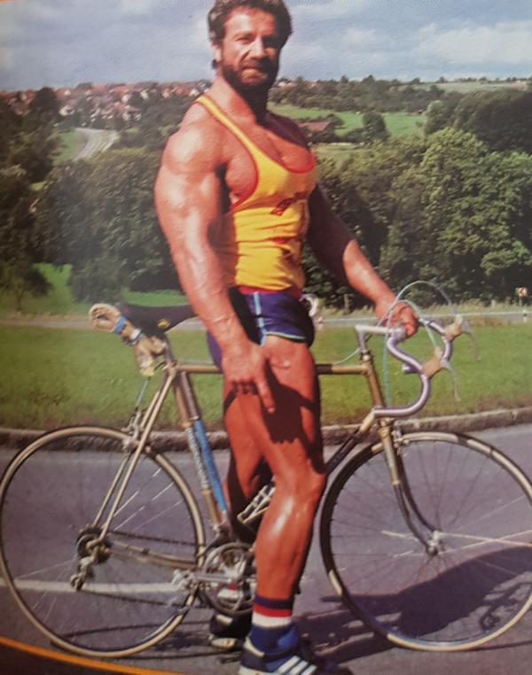 Nach anstrengendem Training kann man sich auch mal nur an dem leeren gewichtslosen stählernen Arbeitsgerät festhalten und sich dem hingeben, wofür normalerweise der verausgabende Gebuildete nach seiner Ertüchtigung keine Zeit mehr findet. Hier sieht man sehr schön, dass man nun wirklich keinen abziehenden Show-Act braucht, um sich darzustellen. Haltung und fertig. Eine Bank und eine Stange reichen, um so auszusehen. Einfach, nicht wahr? Wo für Maschinen, wenn das Einfachste reicht?