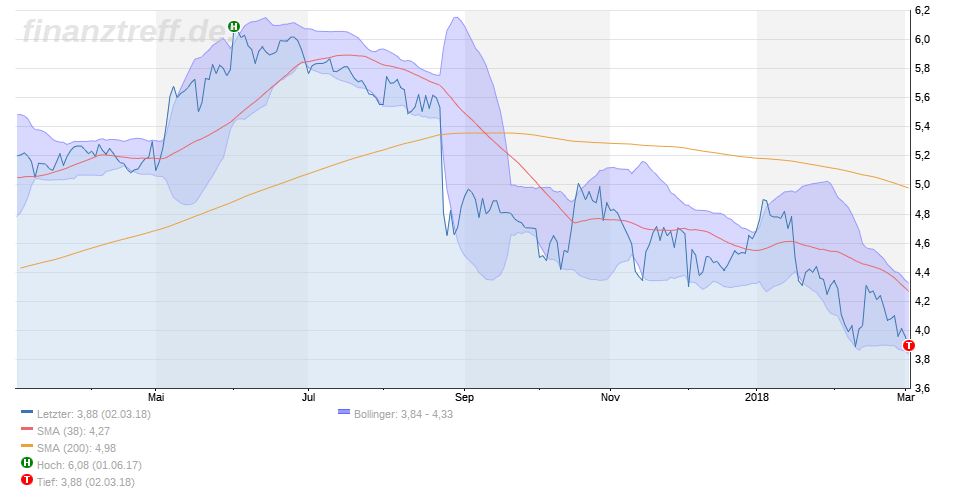 Zoppo Trump: #535 ich denke,dass wir uns jetzt oberhalb 3,80-3,90 stabilisieren. Wir haben ja relativ genau an dem Tief aus 2016 gestoppt und dann wieder leicht nach oben gedreht. ===================== Wer ist denn "Wir"? Bist du etwa schon mit dem Kurs verschmolzen? ;) Wichtig für eine objektive Einschätzung ist emotionale Distanz zu den Aktien zu behalten. Sonst besteht Gefahr sich Dinge schöner zu reden als sie sind und jedem verbalen IR-Wattebäuschlein blind zu glauben. Dann laufen im ungüstigen Fall die Verluste rasch weiter auf anstatt mit strukturiertem Money&Risk Management frühzeitig bei klar negativen Signalen die Verluste einzudämmen. => http://www.handelsblatt.com/finanzen/maerkte/...tie/10003852-all.html => https://boerse.ard.de/app/anlagestrategie/...in-love100~_index-1.html => http://www.handelsblatt.com/finanzen/maerkte/...tand/9517124-all.html