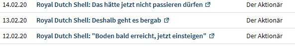 gut 8%, ich habe gestern nachgekauft, zu früh, werde bei weiteren Negativständen nachkaufen und werde , wenn der Kurs wieder im Lot ist, Positionen abbauen, bis dahin habe ich eine ganze Menge mehr Anteile und eine maximale Dividende, 13.2 ist Ex Divi, Auszahlung Anfang März, das selbe bei BP, beide Unternehmen investieren gewaltige Summen, in Aktienrückkauf, zukünftige Technologien und Verbesserung der Infrastruktur, warum glaubt eigentlich irgend jemand das es die Firmen vielleicht in 10 Jahren nicht mehr geben würde? Die relative Grösse beider Unternehmen umfasst ein Vermögen und eine Wirtschaftskraft die manches Land in Europa als BIP nicht hat. Ausserdem hängen hunderttausende Arbeitsplätze an den Unternehmen, und weitere Hunderttausende bei den Zuliefern, für alle ist die Zukunft gesichert, geht es der Firma gut.