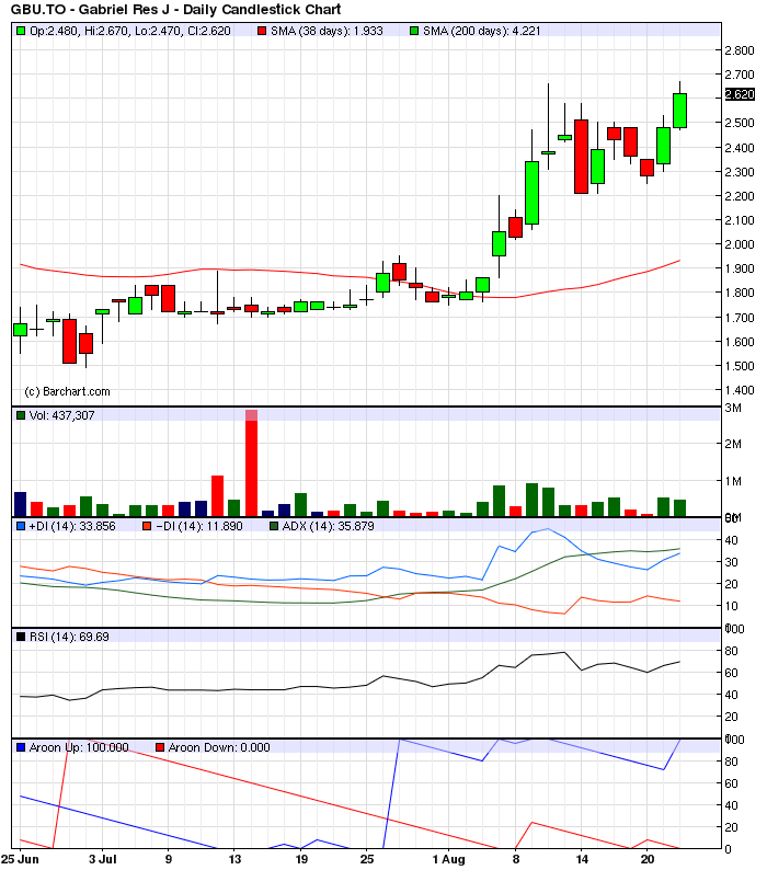 Gabriel Resources - eine kurzfristige Chance auf zweistellige Prozentgewinne. Gabriel Res. Ltd ist eine in Kanada ansässige Explorations- und Entwicklungsgesellschaft mit einem Portfolio an Explorationsgebieten in Europas reichster Gold-Region, dem goldenen Viereck in Rumänien. Über ein JV (Rosia Montana Gold Corporation) hält Gabriel zusammen mit der rumänischen Regierung 80% am Rosia Montana Projekt, welches 10,6 Mio. oz Gold und 52,3 mio oz Silber zu seinen Schätzen zählt.