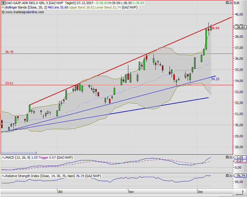 Eine Konsolidierung auf dem jetzigen Niveau vor einem weiteren Anstieg wäre nett, ein Rücksetzer in den Bereich 36,45 ist aber eben so gut denkbar und wäre nicht ungesund für eine weitere solide Aufwärtsentwicklung.