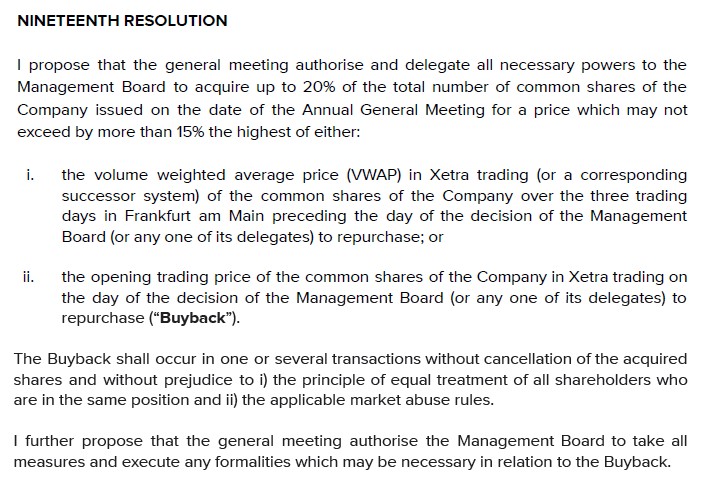 Der im AGM-Transcript genannte Referenztag ist nach ihrem Verständnis nicht bloß der frühere Grundsatzbeschluss zum ARP, sondern der jeweilige Entscheidungstag des Management Boards oder eines Bevollmächtigten für den konkreten Rückkauf. Damit ist die 15%-Grenze dynamisch und wird nicht einmalig beim Start des Programms fixiert.