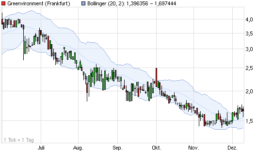 haben wir heute mit den Schlusskäufen gerade noch einmal die Kurve bekommen. Denoch steht der Trend auf der Kippe. Das Bollinger Band bewegt sich zwar noch leicht nach oben, aber die derzeitige Konstellation zeigt, dass man sich auf das Bollinger Band allein nie verlassen sollte! Die letzten 3 Candlestick deuten die Richtung nach unten an. Beim unterschreiten der 1,60 könnte die Unterstützung von 1,50 einen eventuell eintretenden Kursrücksetzter aufhalten. Das unterschreiten der Marke von 1,50 halte ich im Moment für unwarscheinlich. Wer bei der Verengung des Bollinger Bandes gekauft hat steht immer noch gut da und kann ruhig schlafen. Im übrigen halte ich dem vom Aktionär ausgeschriebenen SL bei 1,25 für mutig. Bei 1,40 liegt das Allzeittief und wenn diese Marke unterschritten wird weis keiner wo die Aktie zum stehen kommt! Einschätzung für kommende Woche: Aktie läuft seitwärts, bei neuen Meldungen dürfte es auch wieder weiter nach oben gehen. |