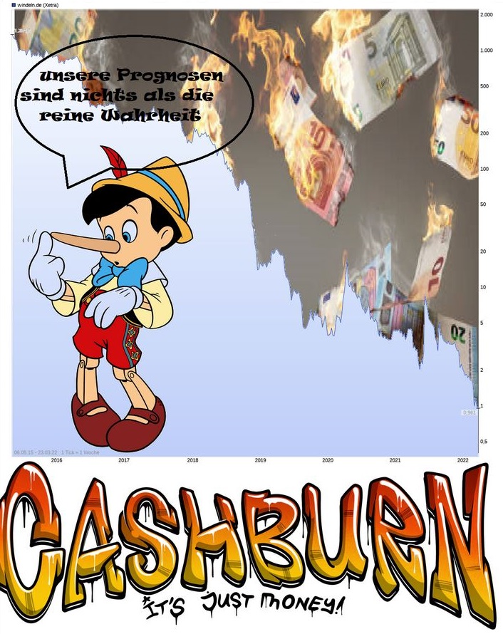 Wer sich mal die Mühe macht die trostlose Vergangenheit dieser (Sch)windel-Bude anzuschauen, der wird kaum verwundert sein heute wieder in der Meldung ( https://www.ariva.de/news/...ndeln-de-se-erwartet-break-even-10063156 ) die gleiche luftleere Prognose-Nummer zu lesen bezüglich Break Even wie jedes Jahr. Hat leider schon fast etwas von traditioneller Folklore. Wird natürlich auch in 2023 nicht erreicht werden. Dafür wird es aber wohl wieder mindestens eine weitere KE geben bis dahin, da der Cash Burn erwartungsgemäß fröhlich weitergeht und die frischen KE Gelder jetzt auch schon wieder auf dem Weg in den Ofen sind. Egal welche Pfeifen da im Vorstand ausgetauscht werden, am Ende kommt so oder so nichts dabei rum. Nur Naive glauben wohl noch an dieses durchschaubare Dauermärchen bzgl. des BE ( und der soll ja eh nur "bereinigt" erreicht werden. Um was denn "bereinigt"? Um die Kosten? ;) ). Die Realität der letzten Jahre zeigt ja, daß hier durchgehend Narrenbespaßung stattfand bzgl. Break Even-Prognose, um so halt die Leichtgläubigen immer wieder zum zeichnen der KEs zu bewegen. (Sch)windel.de ist das Paradebeispiel für einen reinen Abzock-IPO (man schaue wer damals beim IPO dicke Millionen an Kasse gemacht hat) , wo jetzt am Ende nurnoch ein börsennotierter Zombie bleibt (der über 150 Mio an Cash schon verbrannt hat), den man einfach nicht in Frieden sterben läßt, weil es eben immer wieder Stupid Money gibt für die KEs.