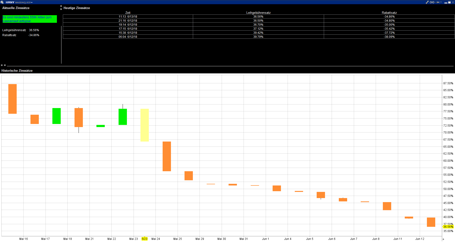 Zinssatz für Short fällt deutlich, kann ein Anzeichen für steigende Kurse sein.