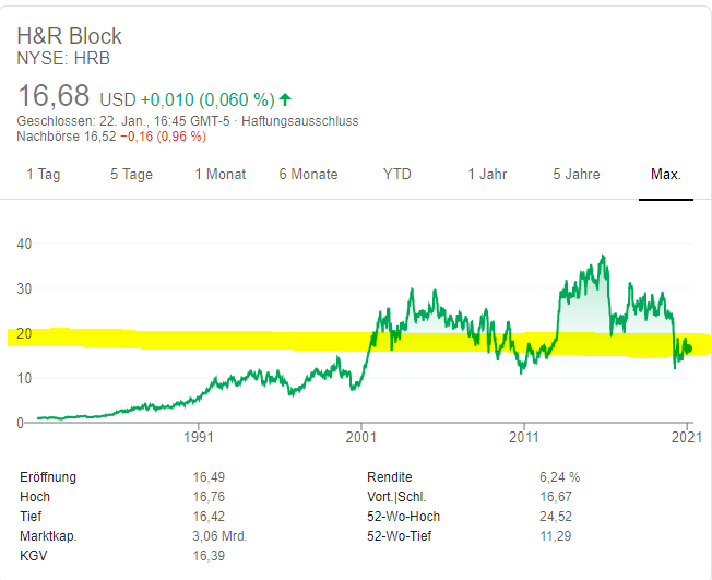 H&R Block ist ein Unternehmen, dessen Aktie ich schon seit längerem auf der Watchlist hatte. Seit dem Corona-Crash ist sie stark abgestürzt und damit interessant für mich geworden.
