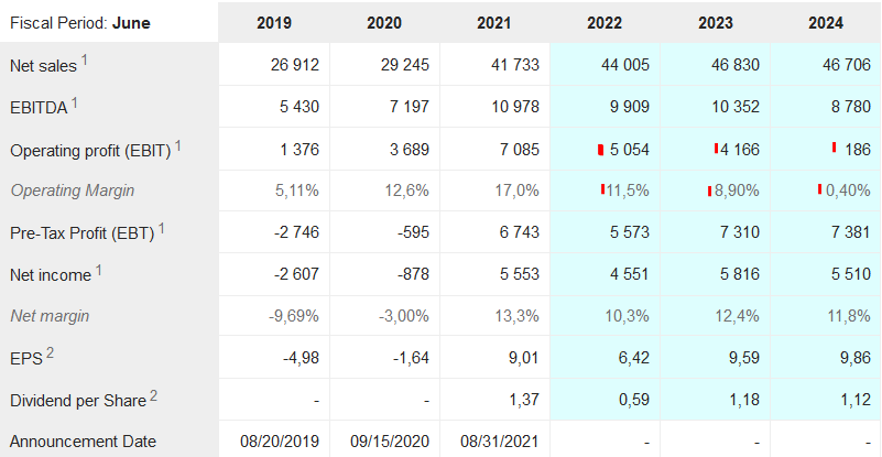 Die Aktie hatte ich auf der Beobachtungsliste. Aber da die Prognosen für den operativen Gewinn (EBIT) fallen und die Marge relativ niedrig ist, habe ich den Wert nicht mehr verfolgt. Evtl. bin ich zu pessimistisch.