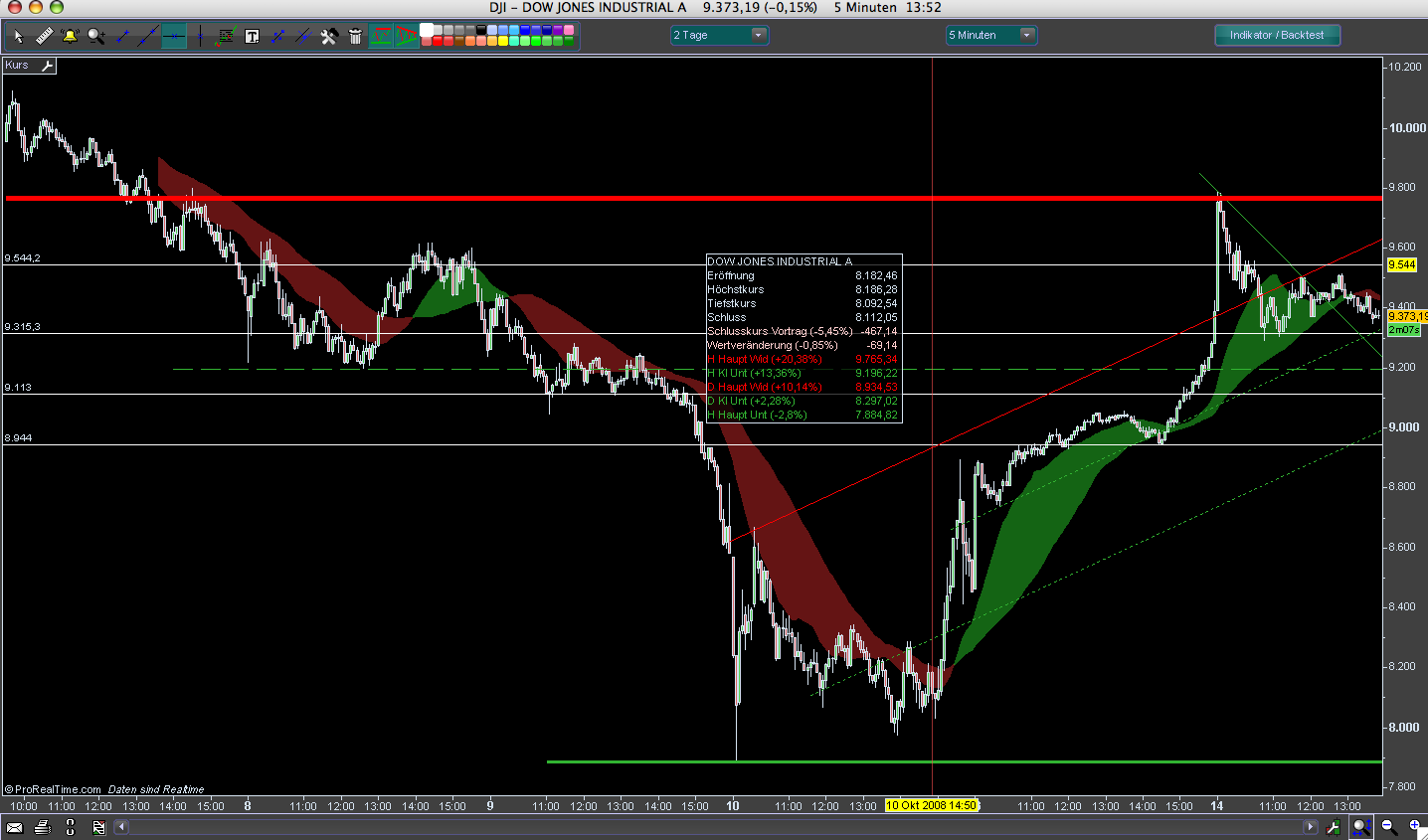 Ich könnte mir vorstellen ,dass die Rallye nicht mal die 10.000 erreicht. Ab 20 h wirds wieder interssant,wenn dann nicht die Schlusskaufe langsam einsetzen wie die letzten Tage,dann denke ich läuft es heute eher nochmal auf die 9300 zu. Die Schlusskäufe sind seit 10.10 kontinuierlich schwächer geworden,deswegen schätze ich wenn es ab ca. 20h tendenziell nach oben gehen sollte, wird es trotzdrm ein geringeres Ausmaß haben als die letzten Tage. Die Aussage von Widerstand bei 9600 die ich vorhin hier gesehen habe,finde ich realistisch. Aber kann man noch nicht sagen,der Dow kann sich noch nicht ganz entschliessen was er macht,ist irgendwie seit ca.18h entschieden zu unentschieden für meinen Geschmack.