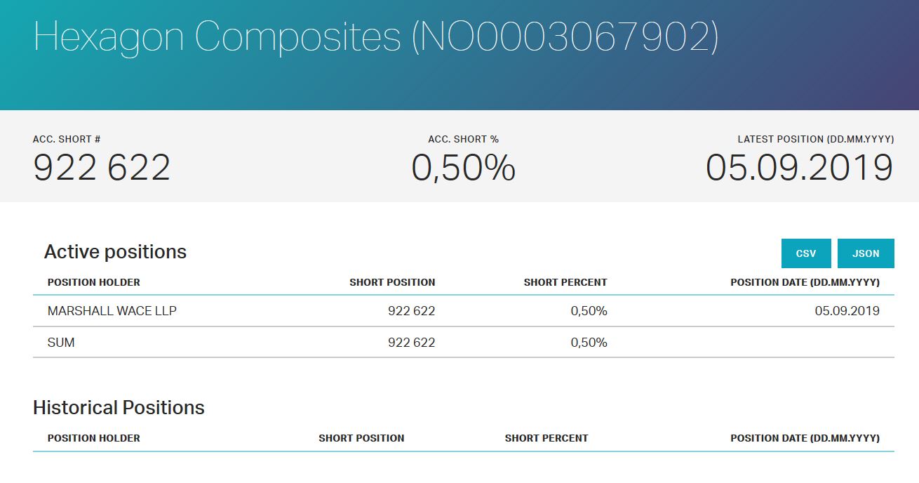 Am 6. September 2019 erwarb Flakk Invest AS 100.000 Aktien von HexagonComposites ASA zu einem Preis von 26,38 NOK pro Aktie.