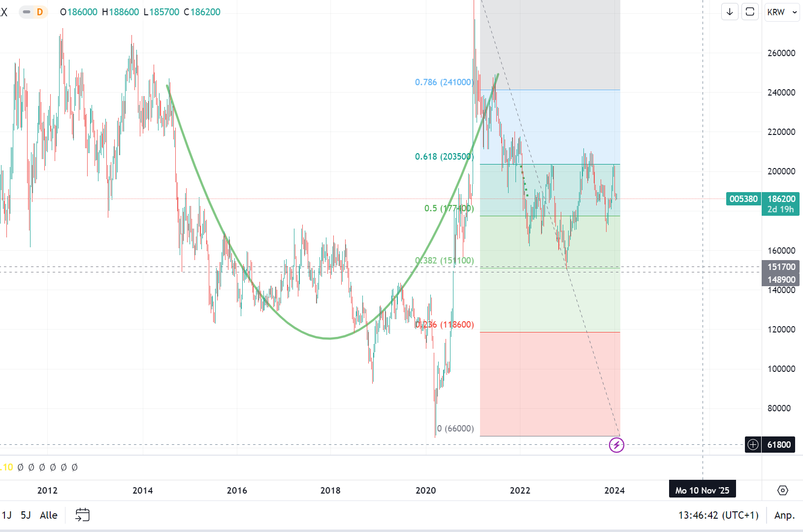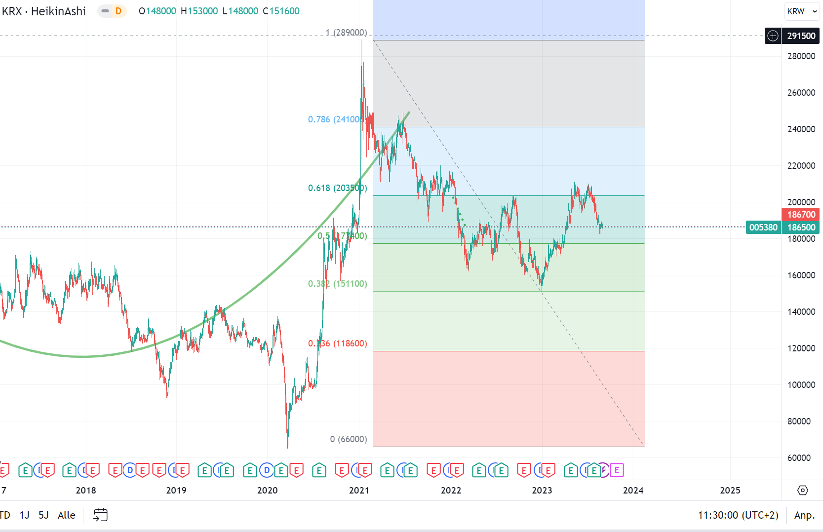 Für den Kurs heißt das, es wird vorübergehend weder Sicherheit noch Eindeutigkeit geben. Bei Zyklikern führt sowas im Regelfall zu volatilen Seitwärtsgängen ggf. auch Rückgang.