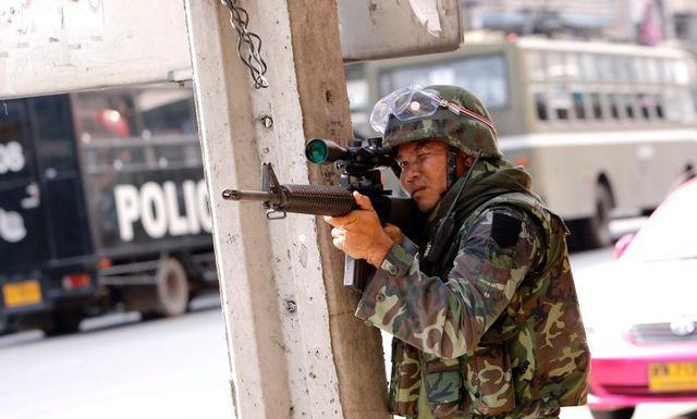 Zur Eskalation trug außerdem bei, dass am Donnerstag der „Militärchef“ der Rothemden Generalmajor Khattiya Sawasdipol, genannt Seh Daeng, von einem Scharfschützen angeschossen und lebensgefährlich verletzt wurde.