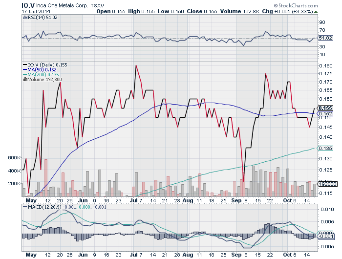 "">ByPublished: Oct 21, 2014 1:57 p.m. ET 0 VANCOUVER, BC, Oct 21, 2014 (Marketwired via COMTEX) -- INCA ONE GOLD CORP. (IO) ("Inca One" or the "Company"), further to its press releases of October 2 and October 8, 2014, is pleased to announce delivery of the second 50 tonne per day ("TPD") ball mill to the Chala plant ahead of schedule. Build-out continues to be on schedule with full commissioning expected by the end of the year.The concrete pads and retaining walls have been completed and installation of the two 50 TPD ball mills are currently underway with commissioning of each ball mill expected to be completed within two weeks of installation. All other equipment and materials are also on site to allow the Company to proceed with the installation. Full commissioning of the expanded plant appears to be on schedule for completion by the end December 31, 2014.As the installation carries on, the Company continues to purchase, crush, stockpile, and test-process Company-approved ore deliveries through an interim ore milling circuit. This initiative will help the Company continue to establish best-practices in their production process.Processing and test-milling through the 50 TPD ball mills is expected to begin mid to late November 2014, while commencement of full scale commercial production is anticipated early 2015.Upon completion of the build-out, the Company expects to be able to weigh, crush, assay and assess the chemistry and metallurgy of all incoming ore onsite in a timely fashion. The goal is to accumulate and stockpile ore purchases for up to 30 days production at 100 TPD through-put.Inca One has made extensive progress since acquiring the mill in 2013, and is in the final stages of its transition from an exploration company to an ore processing company servicing government-permitted small-scale mining operations in Peru.About Inca One Gold Corp.: Inca One is a Canadian-based mineral resource company and ore processing company with a gold milling facility in Peru, servicing government-permitted small-scale miners. A highly mineral-rich country, Peru is one of the world's top producers of gold, silver, copper and zinc, with substantial production coming from small scale miners who need government permitted milling facilities to process their ore (such as the Company's Chala mill).On behalf of the Board,Edward KellyPresident & CEOInca One Gold Corp.