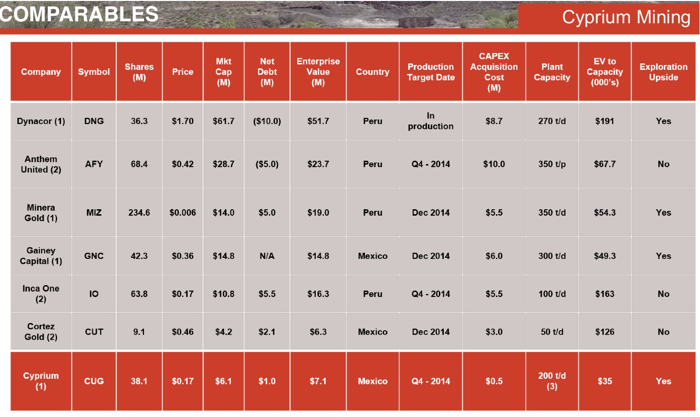 Ich habe unten ein Bild angehangen, was den Vergleich von den verschiedenen Unternehmen aus der Branche zeigt (Quelle: www.cypriummining.com).