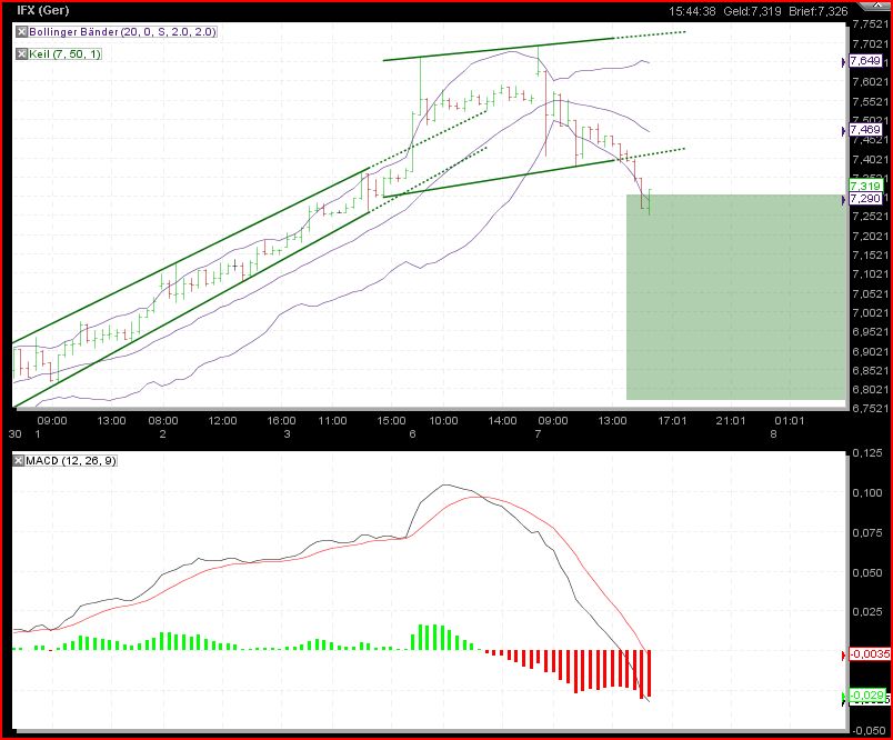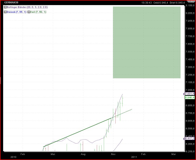 nur eine Vermutung, aber dieses Bild habe ich gstern gezeichnet, wo wir die Kerze heute noch nicht hatten (1. Strich sollte die heutige Kerze darstellen), aufgrund der Abschlußkerze von gestern. Wenn sich das Muster genauso abbildet, könnte ich mir einen Test des Langfristtrends vorstellen. Dieser verläuft diese Woche wie soll es anders sein, genau bei dem Gap 6,55. WENN das so läuft, wäre Donnerstag der Tiefstkurs. Je nach Daxstand. Sollten wir unter 6650 fallen ist selbstverständlich alles möglich und auch eine Infineon kann dann unter Ihren Trend fallen. Das glaube ich aber in keinem Fall! Dafür sind die Fundis nun zu stark und wir zu dicht am Jahresende. Im Januar könnte ich mir ein Gapclose im Dax aber nach so einem Jahr durchaus vorstellen. Dieses da wäre bei 6316. Was meinst Ihr? |