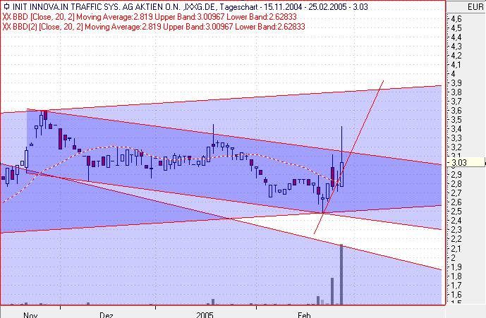 Theoretisch ist jetzt auch die Bildung eines sich verengenden Trendkanals denkbar, dazu abwarten wo sich die Range einpendelt. Auf jeden Fall auf das Volumen in den nächsten Tagen achten, absichern aber nicht nervös werden wenn's nochmal nach unten geht. Init ist momentan recht volatil.