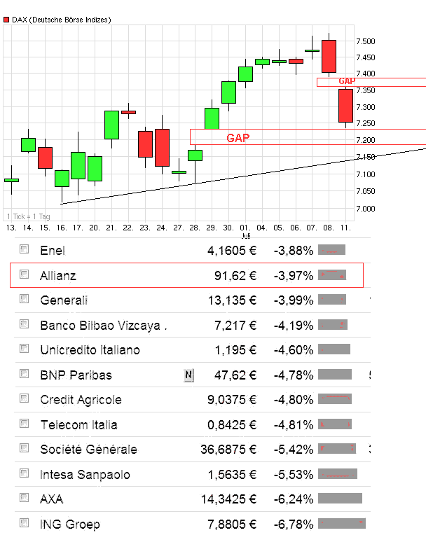 Das gleich konnte man bei Aktie von Volkswagen gestern auch sehen. Letzte Woche hui und gestern pfui... .. "Der Motor stottert", konnte man gestern auf einmal lesen. .... Was für ein Blödsinn, was da aufeinmal losgelassen wird. Solch ein großes Autowerk mit einer tollen Produktpallette. Soetwas ändert sich doch nicht von heute auf morgen. Die werden auch weiter erfolgreich fahren. Das gilt auch für die Allianz.