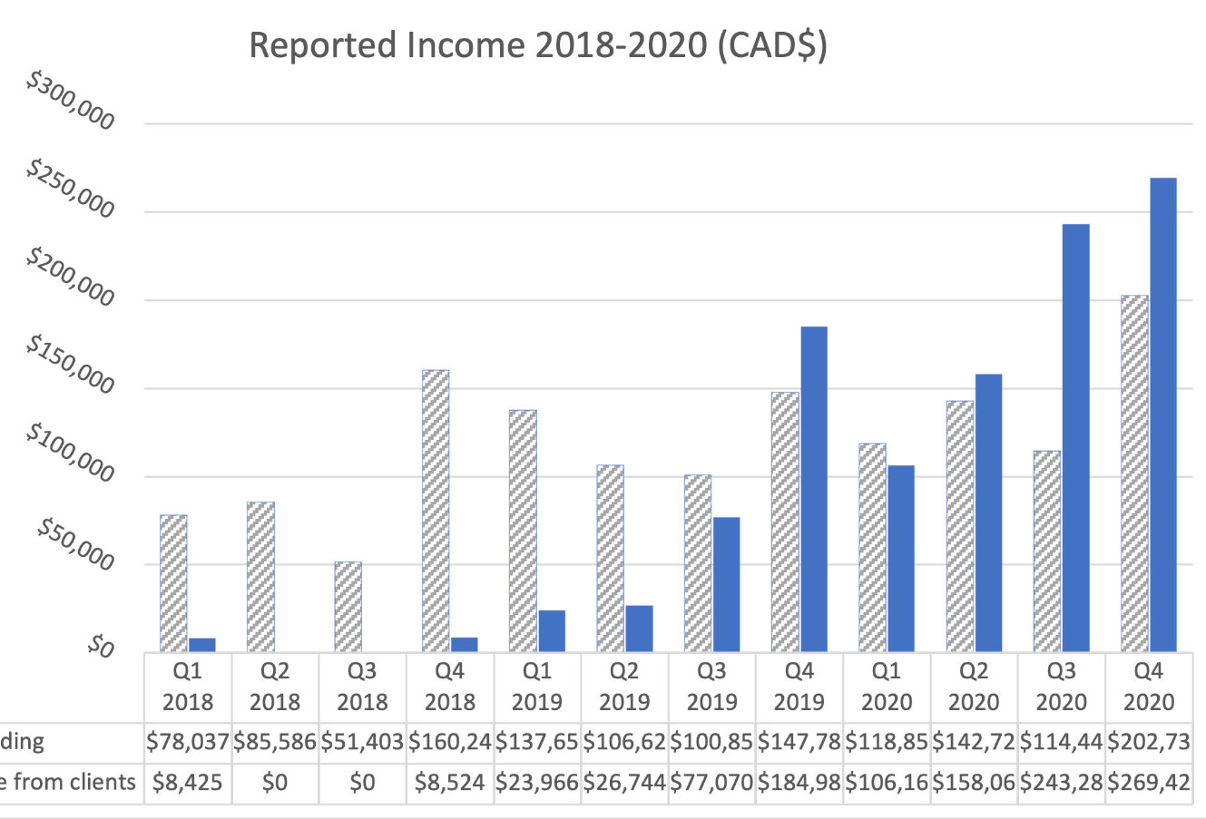 Die Umsätze im vierten Quartal 2020 lagen bei 142.374 CAD und damit fast doppelt so hoch wie im zweiten Quartal 2020. Die bereinigte Gesamteinnahmen (Umsätze plus Subventionen und Zuschüsse) lagen im vierten Quartal bei 472.167 CAD im Vergleich zu 357.733 CAD im 3. Quartal. Die Gesamteinnahmen im Jahr 2020 belaufen sich auf 1.236.000 CAD.