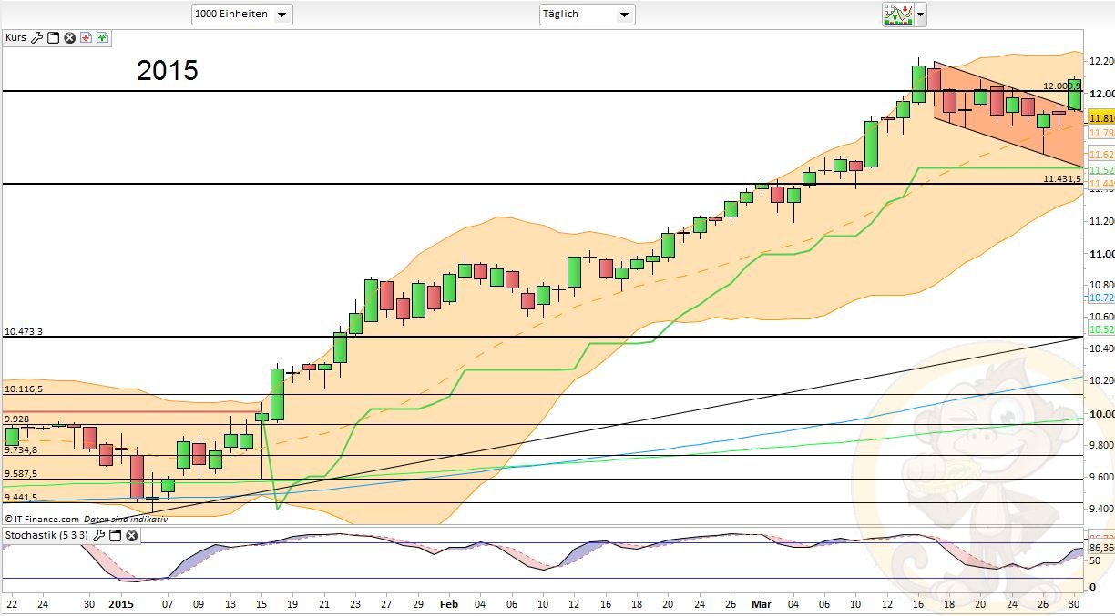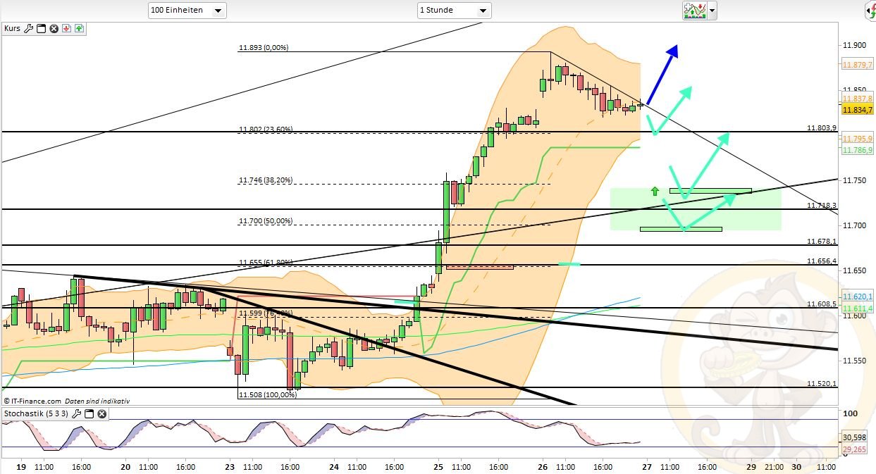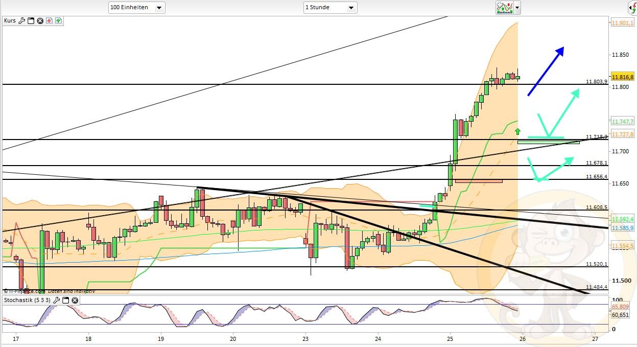 Tendenz: 11800 als Trigger. Darüber aufwärts, darunter Abwärtstendenzen