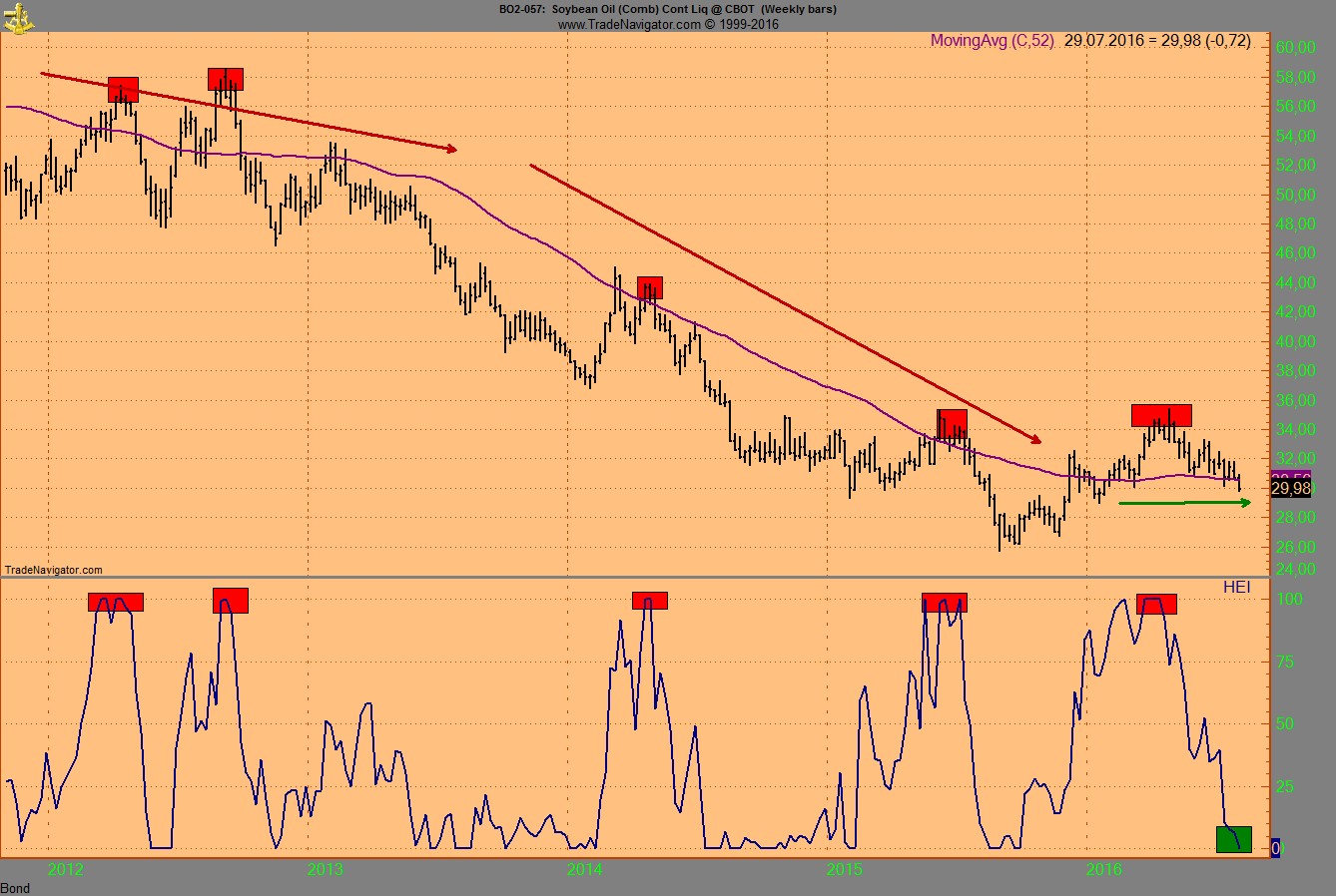 ABER, die momentane Richtung koennte noch etwas die Longseite sein, weil wir sehen dass der Comm Index noch im fallen ist und sich noch nicht auf der null befindet.