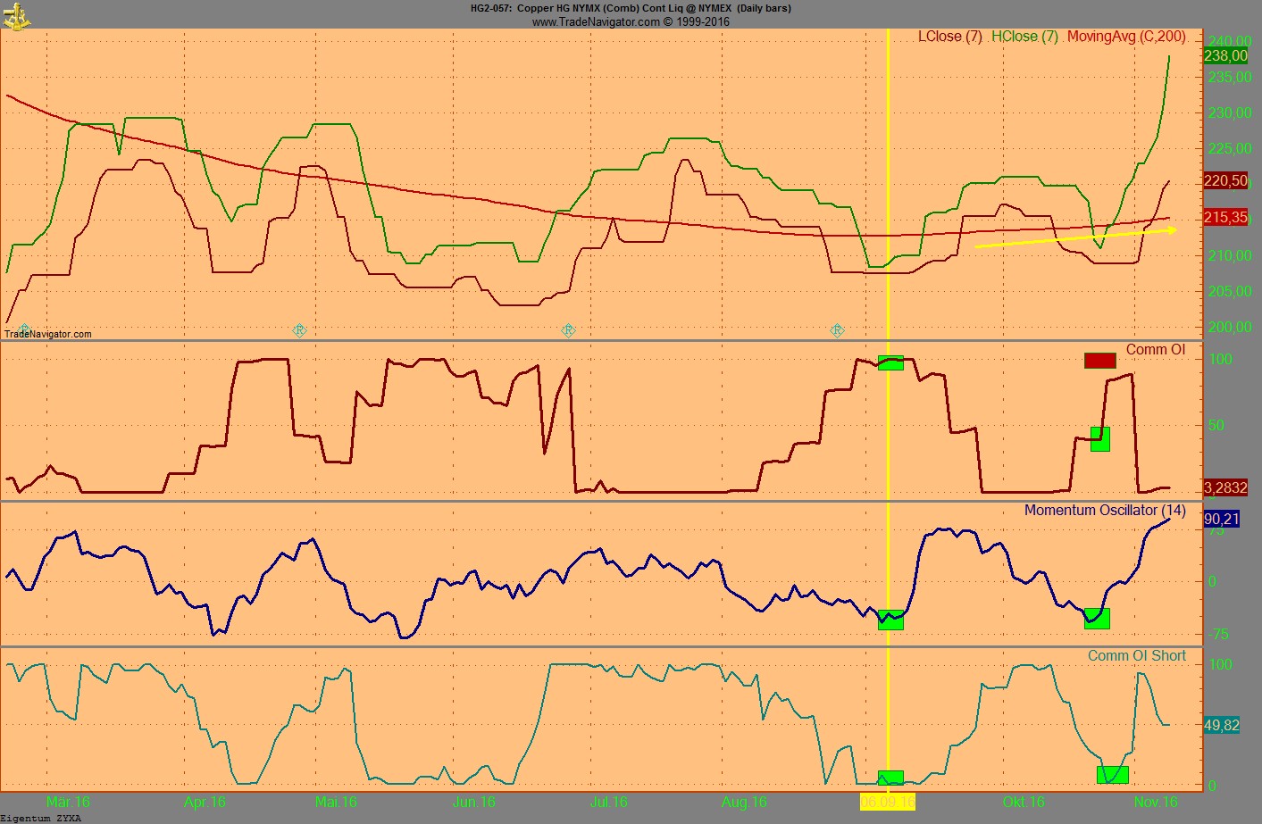 While the gold price has given up much of its initial surge following Donald Trump's victory in the US presidential elections, staying stuck below $1,300 early on Thursday, the rally in industrial metals were only gaining momentum. In pre-regular hours trade on Thursday copper for delivery in December jumped more than 10 cents from Wednesday trading as high as $2.5910 per pound ($5,712 a tonne) in New York. That's up more than 12% since the eve of the election and the highest since early July last year. Copper has risen during 13 of the last 14 trading sessions, adding 23.8% in just over two weeks.