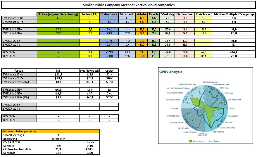 Aufgrund der spezifischen Unternehmenssituation, die aktuell vorwiegend auf Wachstum ausgerichtet ist, muss man bereit sein, dieses Unternehmen über die nächsten 5 Jahre zu halten, weil erst dann sie Skalierungseffekte zum Tragen kommen. Der aktuelle Aktienkurs zeigt, dass immer weniger Marktteilnehmer bereit sind, dem Unternehmen so lange treu zu bleiben. Actua ist aber eine reine Langfriststory, hier gibt es keine kurzfristigen Katalysatoren.