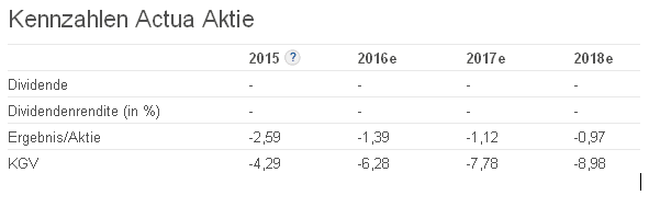 das Geschäftsmodell ist halt sehr visibel. Die Buchungen sind ja jetzt zum HJ sehr stark und werden entsprechend zeitverzögert in Umsatz umgewandelt. Da bei Actua die Renewal Rate bei fast 100% liegt, kommen diese Buchungen on Top, bzw. müssen keinen wegfallenden Umsätze kompensieren, wie bei stark projektlastigen Unternehmen. Insofern ist es bereits jetzt absehabr, dass 2017 deutlich besser verlaufen wird, da gerade die aktuell schwachen Unternehmen Folio und Bolt starke Auftragseingänge zu verzeichnen haben. Actua spricht bei den Buchungen ja auch von Annual Recurring Revenue (ARR). Ein solcher Umsatz ist m.E. viel wertvoller als einmaliger Projektumsatz.