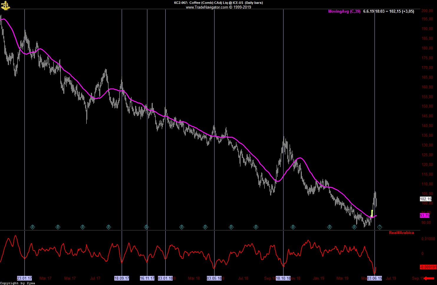 Erschwerend kommt noch was hinzu....der Spread zwischen Arabica Future Preis und dem brasli Real in Chart 2. Der steht mega im Bär....wenns nach der Vergangenheit geht. Wohl gemerkt "Vergangenheit"!!!!