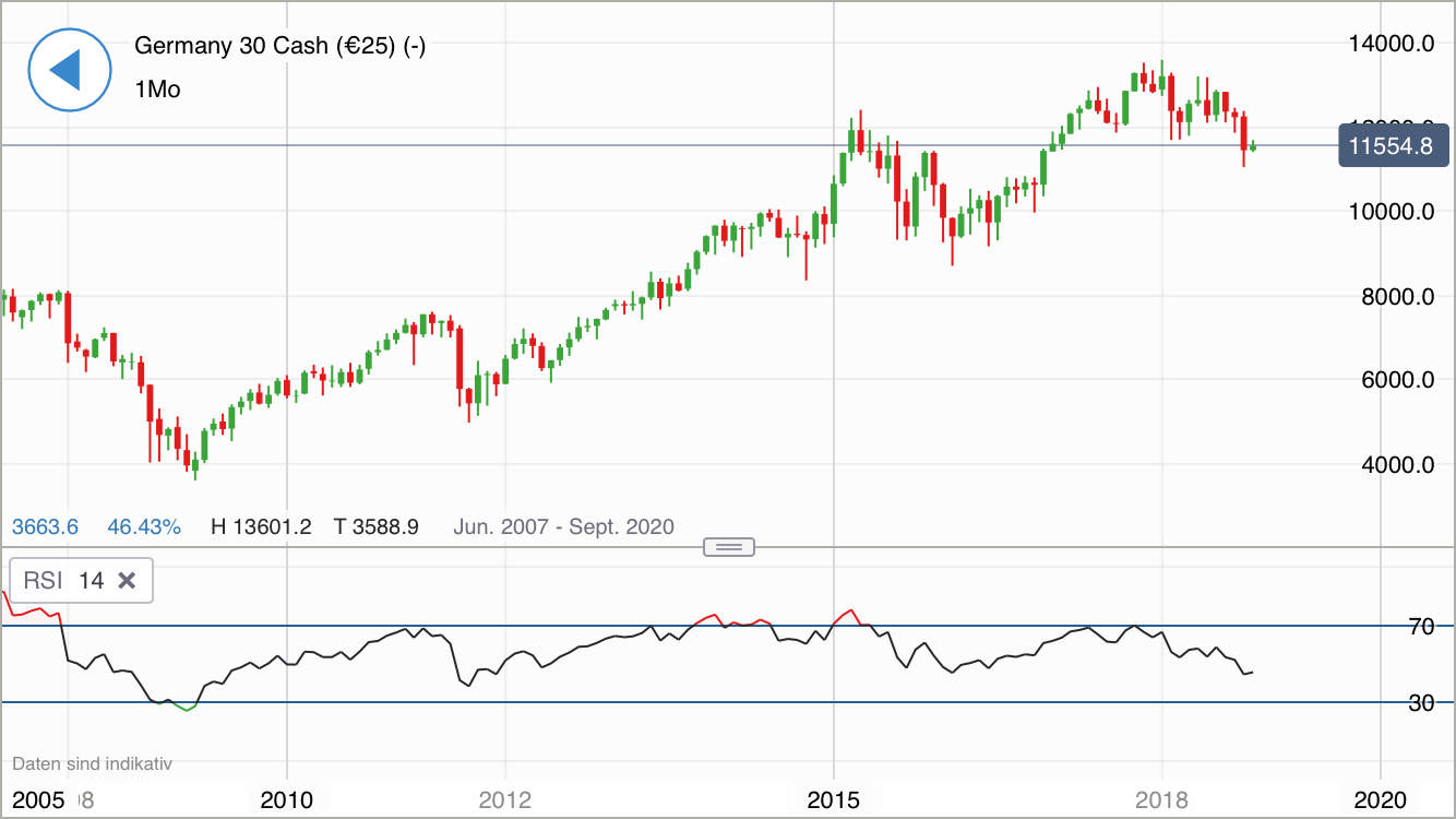 Ich wollte mich drei Charts im monthly, weekly und Daily melden. Ein guter Kumpel, der leider nicht posten, möchte und nur stiller mitleset ist, hat mir geschrieben, dass Ih Nichtspielers negative Stimmung zum Dax verbreiten soll und bitte aufhören möge denselbigen zu Bashen. Er selbst vertraut auf den RSI als Indikator und seineneinschätzungen zufolge istauf allen drei Zeitebenen viel Luft nach oben, womit wir in drrJahresendrallye seiner Meinung wären. Es folgen nun die Charts.