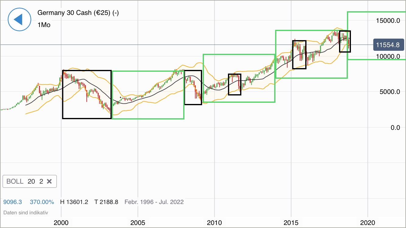 Der sogar eine Hausse 3.0 im dax implizieren könnte. Wieso? Nun, weil wir im dax seit März 2009 echte Konsolidierungen hatten. Davor „schwebten“ wir konstant über mbb im monthly. Seit 2009 haben wir immer wieder mal Ubb besucht. Somit fehlt noch der final blow off bis 15.000 (das hat Weygand vor längerer Zeit mal erwähnt) bis es zum großen Crash kommt.