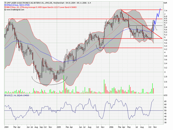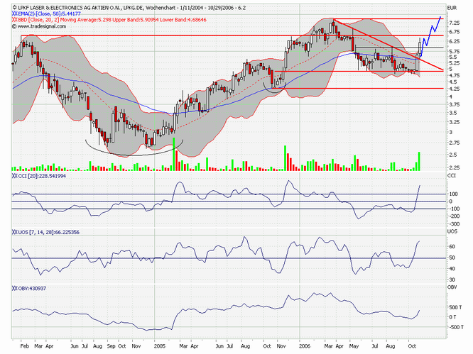 Coming-out im November Jetzt ist der richtige Zeitpunkt zum Einstieg : Vom 14.bis 17. November will LPKF auf der Fachmesse Electronica in München für Aufsehen sorgen,kurz darauf folgen die vorläufigen Quartalszahlen,am 23.11 der komplette Bericht.Diese Mal sollte der Kurs steigen.