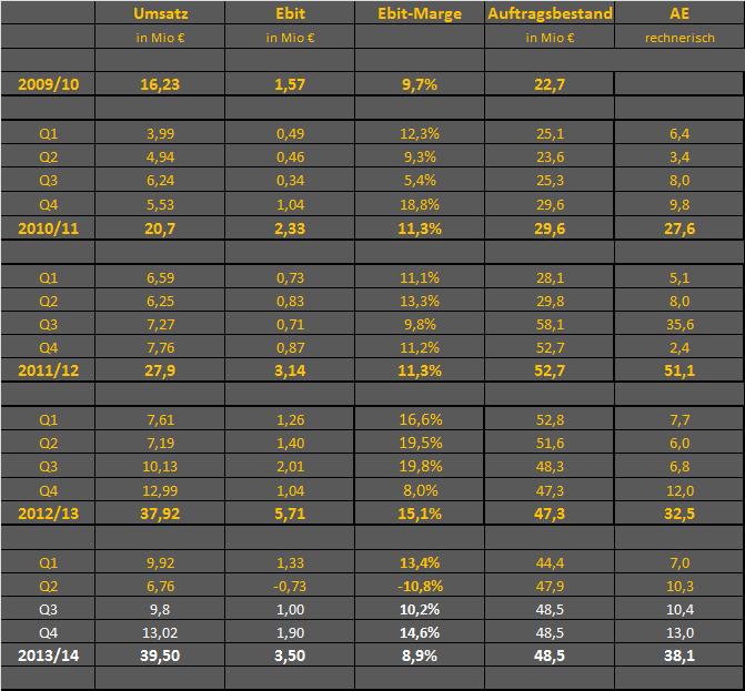 Man hat in Q2 2014 1 Mio. weniger Umsatz gemacht als in Q2 2013 somit fehlt da schon eine Mio. am Ergebnis, eine feste Kostenstruktur vorausgesetzt. Berücksichtigt man dann noch Personalaufbau, die Akquisition von Radiosoft, hat man da ganz schnell ein negatives Ergebnis, verschiebt sich dann noch der hochmargige Lizenzumsatz, so ist ein "Horrorquartal" perfekt. Ich würde in kleinster Weiße die 15% Marge als gefährdet sehen. Man hat einfach die Strukturen schon für zukünftiges Wachstum angepasst, was natürlich entsprechend Geld kostet und das Ergebnis belastet solange keine Umsätze gegenüberstehen. Lasst doch LS mal wieder einen größeren Auftrag akquirieren dann ist der Auftragsbestand bei 60 Mio. und es gibt genügend Phantasie