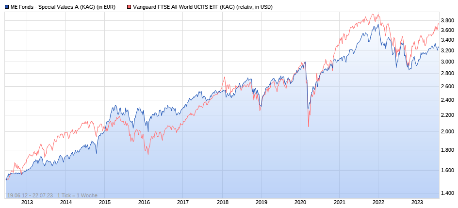 Gebührenstruktur: Wie bei vielen Fonds ist die Gebührenstruktur ein wichtiger Aspekt, den Anleger berücksichtigen sollten. Hohe Verwaltungsgebühren können die langfristige Performance erheblich belasten, besonders bei einem Fonds, der bereits durch eine volatilere Entwicklung gekennzeichnet ist. Der ME Fonds – Special Values A weist eine Managementgebühr auf, die im Vergleich zu passiven Anlagestrategien eher hoch sein könnte. Anleger sollten sich dieser Kosten bewusst sein und deren Einfluss auf die Rendite berücksichtigen.