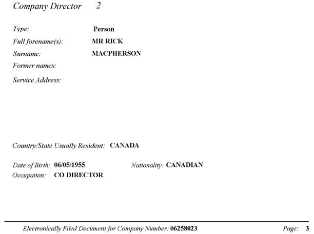 Hier der Registereintrag im Unternehmensregister Großbritannien als Director bei Grunergy: