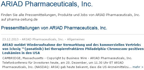 Was man dazu sagen muss, Konnte sich ARIAD wohl keinen schlechteren Zeitpunkt aussuchen für diese News! Feiertage dazwischen usw... nunja aussuchen konnten sie es sich nicht da die Herrschaften verpflichtet sind so schnell wie möglich das ganze bekannt zu machen.