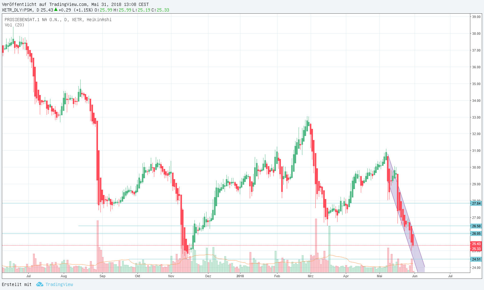 ich verfolge das Ganze schon seit geraumer Zeit. Die fallenden Kurse sind meiner Meinung kein P7M-spezifisches Problem. Der ganze Medien/ Werbesektor ist doch am fallen, vergleiche ich das ganze mal z.B mit RTL oder WPP. Ich denke, es herrscht Unsicherheit darüber, wie Rentabel Werbung in Zukunft ist (Speziell WPP) und wie stark die Streaming-Dienste den TV-Sendern Marktanteile weg nehmen können. Ich denke, P7M wird sich anpassen und ich werde nocheinmal nachlegen. In einem ähnlich gelagerten Fall hat es z.B auch beim Springerverlag bisher gut geklappt. Von der Zeitung hin zum Internet, Apps u.a.