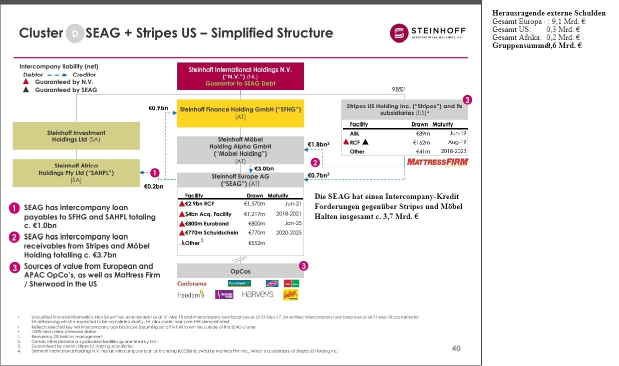 Und wir hätten alle Vorteile einer Inso, der Nachteil geht unter!(Enteignung) Da wir Aktionäre von Steinhoff International = Eigentümer und Gläubiger von Matress sind^^