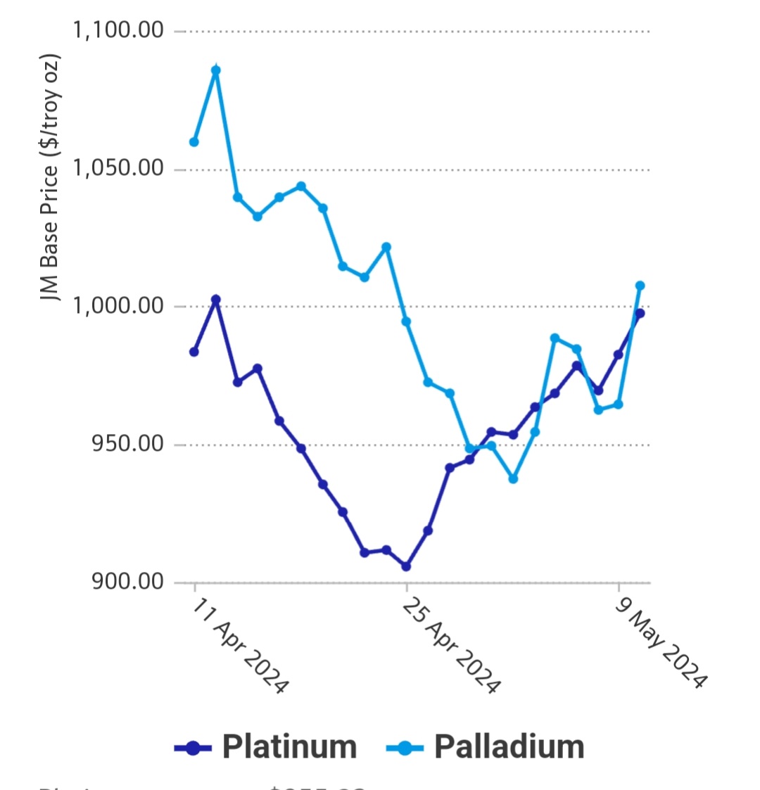 Ausserdem kommt kaum Pt aus Russland. Deren Minen haben hauptsächlich Pd während SA/Amplat Pt-Lastig ist.